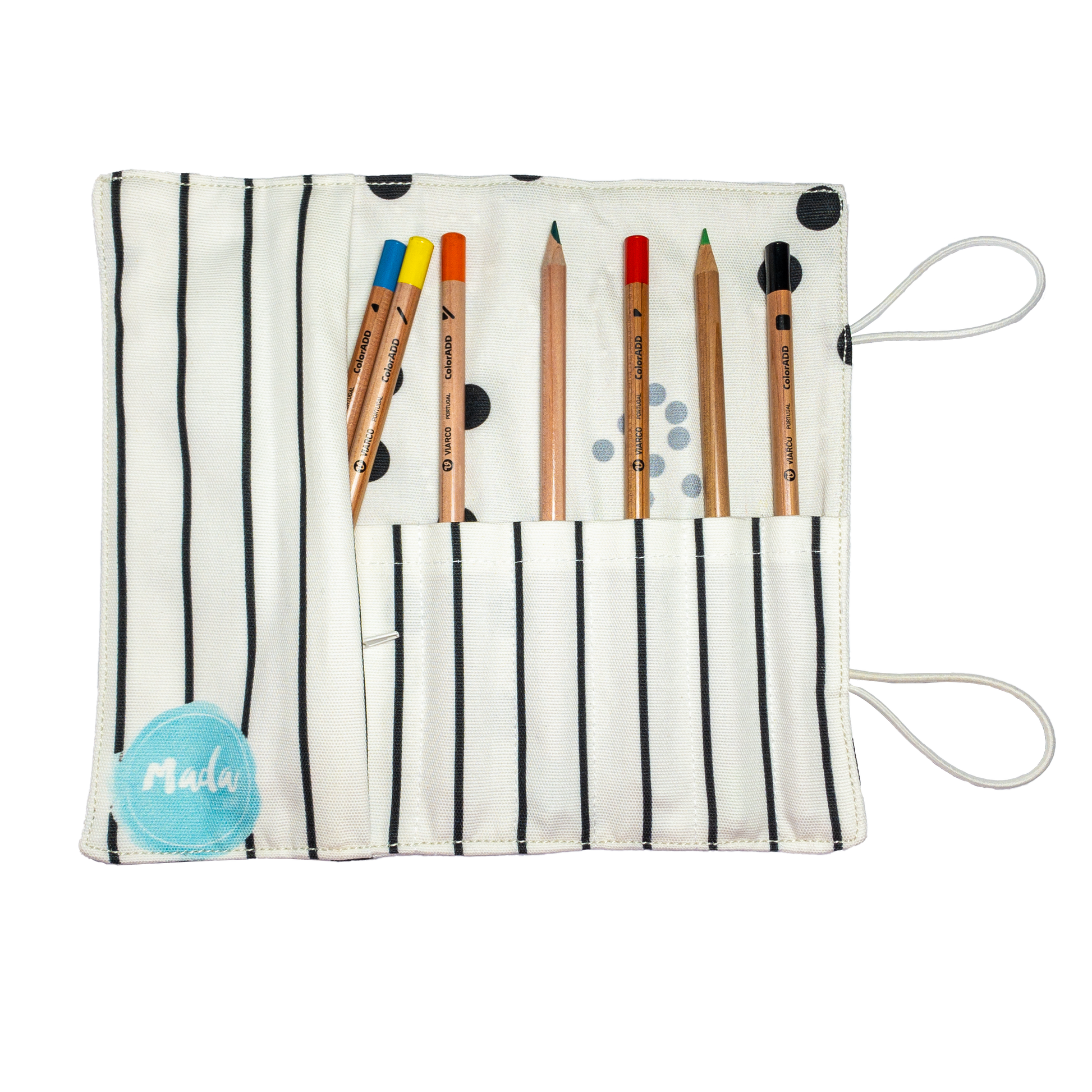 It has 12 Viarco color pencils included with ColorAdd Code, a code that helps blind color people to paint!