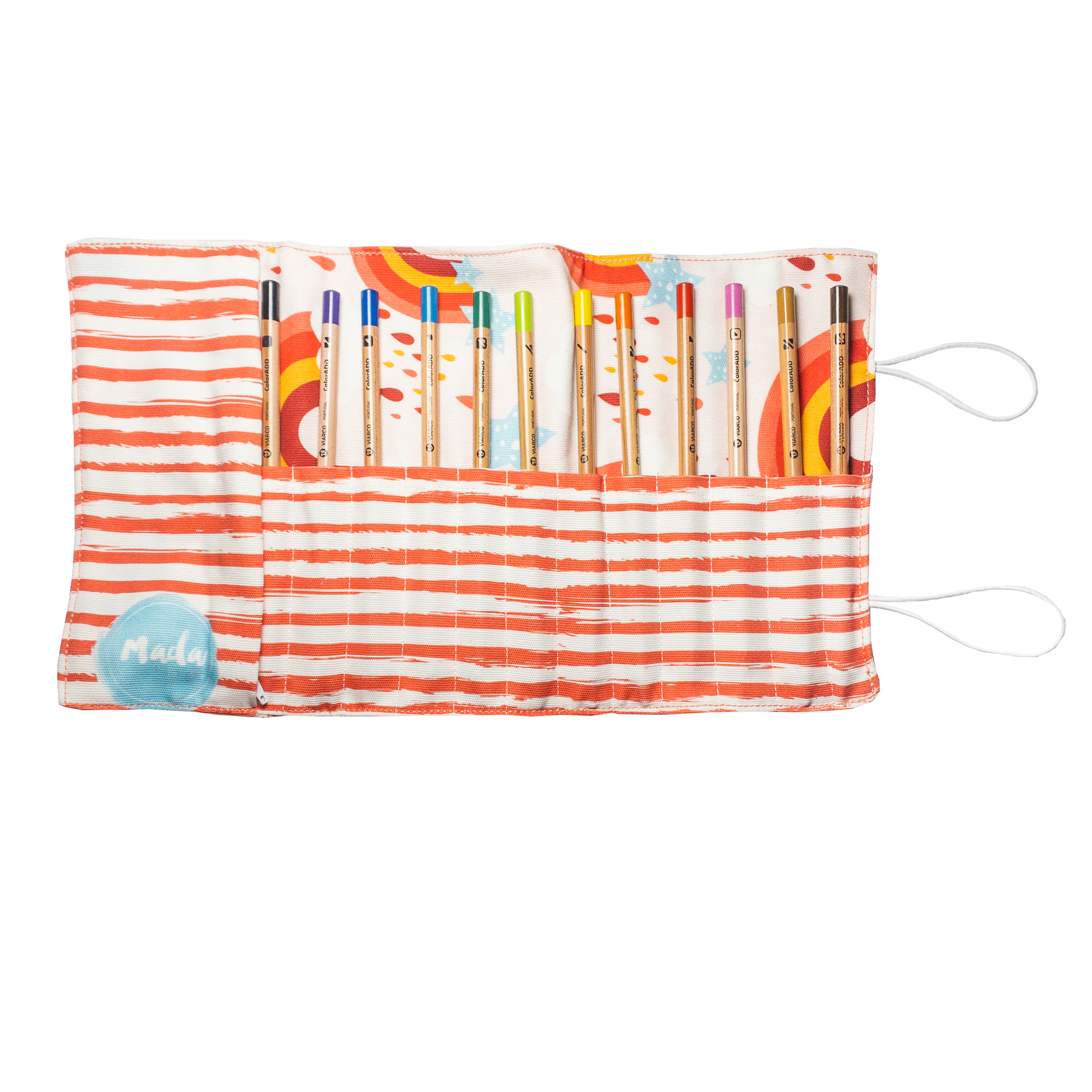 It has 12 Viarco color pencils included with ColorAdd Code, a code that help blindcolor people to paint!